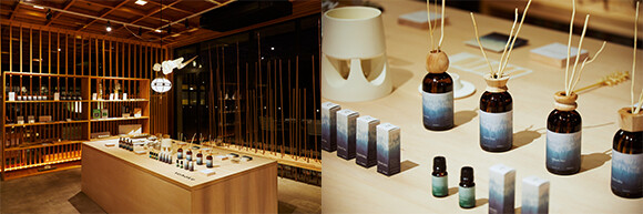 日本香堂からこの10月にローンチされたばかりの新フレグランスブランド、Yohakuの国内初の期間限定ストア。日本各地で育まれたヒノキ、クスノキなどの和木、ユズや和ハッカといった果実やハーブの100%天然精油から創香したフレグランス製品と、それを楽しむプロダクツを提案する。
