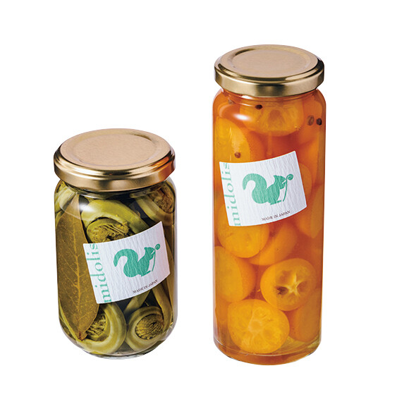 「季節の恵みを閉じ込めたい」と作るピクルス。佐賀で有機栽培された甘い金柑や秋田の山奥でマタギが採取したこごみなど、季節の味を瓶に詰めて。●こごみ170g ¥918、金柑200g ¥1,080/ミドリス https://midolis.stores.jp