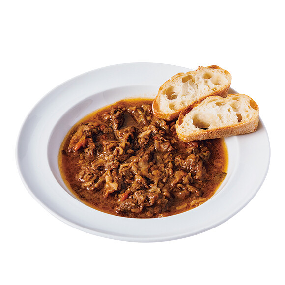 人気料理家・坂田阿希子が手がける洋食店。甘く炒めたタマネギと牛肉、トマトをとろとろになるまで煮込んだミロトンを自宅でも。●ミロトン200g ¥2,300/クチブエ https://kuchibue.tokyo ※パンは付属品ではありません