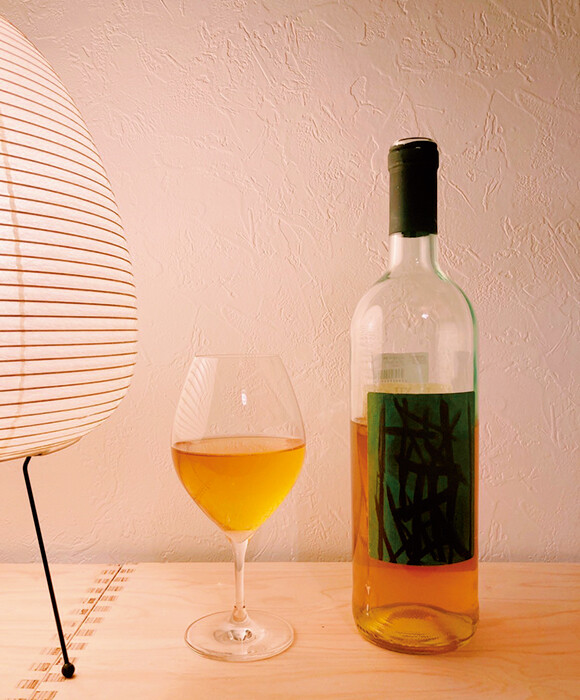 「仕事と家事を終えた後、映画を観ながらとっておきの1本を開栓。代々木上原のクインディで出合ったオレンジワインは、しっかりとした味とコスパのよさで何度もリピート中。木村硝子のピッコロは、松濤のソンデコネで、可愛い! と、シェフに教えてもらったもの。ステムが短くカジュアルなので、日々の食卓になじんでくれるのも魅力です」