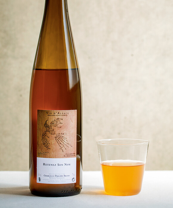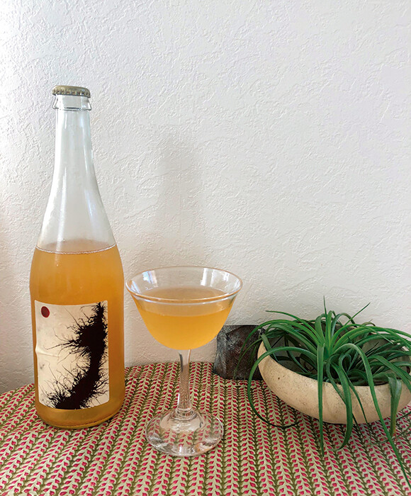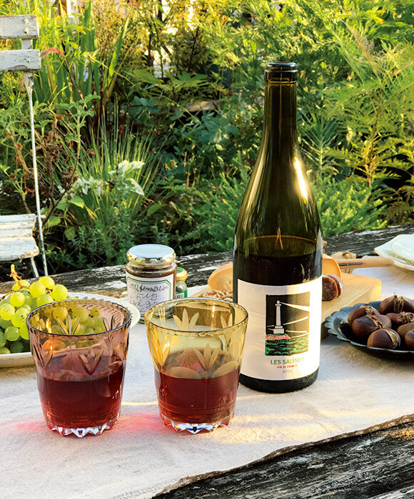 「ナチュールは、休日の昼間から友人たちとおつまみを持ち寄ってストレスなく楽しむのが定番。アルザス産のこのワインはフレッシュな味わいで、ほんのりと感じる微発泡感がお気に入りです。無駄な要素を削ぎ落したような木下宝さんのシンプルなグラスは、ほどよい大きさと優しい飲み口。ひとりで飲む時も愛用しています」
