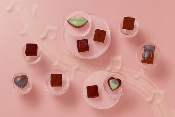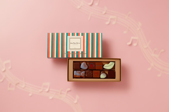 「2022 ヴァレンタイン コレクション」のテーマは、”Des lendemains qui chantent(明日への希望を歌おう)”。恋人たちの思い出を紡ぐ「ふたりだけの歌」のように、愛と音楽へのオマージュによって、喜びにあふれたコレクションが生まれた。クラシカルなアソートボックスの中には、ハートモチーフのほか、「ラブ ジャズ」「ラブ ロック」「ソナタ」「クレ」(フランス語で音符の意)など、音楽をモチーフにした限定のボンボンショコラが入っている。