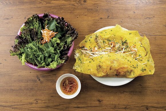 ベトナムに来た!と感じさせる異国の香りが心地いい、定期的に旅気分を味わいに行くお店。パパイヤのサラダなども楽しみながら、ミントを挟んで食べるバインセオが大好き。パリに住んでいた頃よく行っていたベトナミーズのお店に味が似ていて、思い出しながらバリバリむしゃむしゃといただきます。¥1,500
