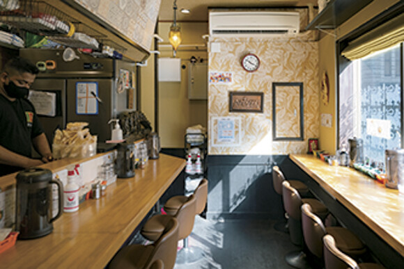 2021年2月にオープンしたスリランカカレー店。レシピはスリランカ人シェフが監修し、小麦粉や油を使わず、野菜とスパイスをふんだんに使ったヘルシーなカレーが揃う。カレーに副菜が付くのも特徴で、三つ葉やニンジンのサンボール、紫キャベツのピクルス、パパダム(豆のスナック)が彩りよく盛り付けられる。朝からカレーを食べるスリランカに倣い、8~11時に朝カレーを提供。定番3種類のほか、シェフの気まぐれ朝カレーも登場する。