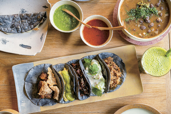 メキシコ人シェフのマルコ・ガルシアが営む。2020年から朝型の営業にシフトし、メキシコで朝食を意味する「デサユノ」の楽しさを広めている。スペイン語で「青いタコス」という店名のとおり、トルティーヤにはメキシコから輸入した在来種のブルーコーンを使用。毎朝製粉し注文後にプレスして焼きたてを提供するため、香りのよさは格別だ。シェフの母の味である豆スープ「フリホレス・チャロス」は朝食にぴったりの優しい味わい。