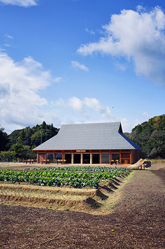 「陽・燦燦」の見どころといえば、まずは建築家の坂茂氏が担当した建物だろう。再生可能な材料を使っているのが特徴で、柱と梁には坂氏が得意とする紙管を採用。円柱形のモダンな要素が、庄屋の家のようなデザインに見事にマッチしている。そして、屋根に使われるのは堆肥として再利用できる茅で、定期的に「茅葺体験」のワークショップが行われている。参加者は自分の手でレストランを創ることで、自然と共存する豊かな暮らしを体験できる。