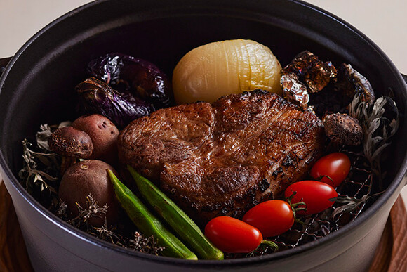 料理については、「Awaji Nature Lab&Resort」の敷地内にある畑で育てた野菜をはじめ、金猪豚(ゴールデン ボア ポーク)などの淡路島産を厳選。これらの食材を使い、発酵醸造料理人として知られる伏木暢顕氏と、山形県鶴岡市のイタリアンレストラン「アル・ケッチァーノ」のオーナーシェフである奥田政行氏が監修したメニューを提供する。