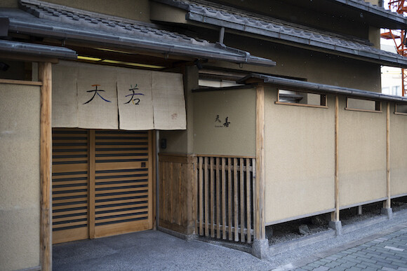 3歳の頃から祖父が営む京料理店、天若を継ぐと決めていたという西岡瞭。大学卒業後、3年間は祖父の元で学び、その後、高台寺和久傳やおたぎでの修業を経て、2021年末に同店名で新装オープン。3フロア全80席だった店の1階が、ゆったりとしたカウンター席と個室に生まれ変わった。コースは、若手には珍しい細やかな仕事と季節を盛り込んだ八寸から始まり、お椀、お造り、そして一品一品目の前で揚げられる天ぷらへ。新鮮な車海老や農家を訪ねて厳選した野菜、そして祖父考案の豆腐の天ぷらまで、さくっと軽やかな揚げたてをほおばる口福が続く。「祖父は妥協せず細かいところまで仕事をし、お客様の顔を見てから味付けをしていました。私もひとりひとりのお客様に寄り添うような仕事をしたいです」