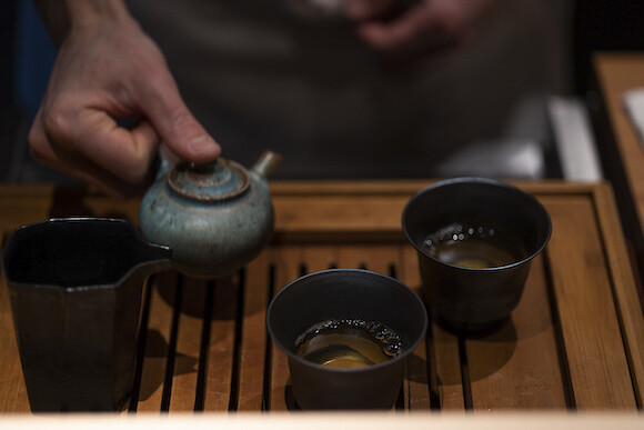 西岡は大学時代から学んでいる茶道のほか、1年前から中国茶を堀口一子の元で勉強中。食中や食後のドリンクに岩茶の温かいもの、冷たいものをオーダーできる。