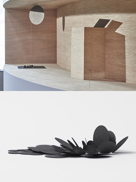 坂下 麦さんが一貫してとり組んでいるのは「SUKI」シリーズ。イサムノグチの「AKARI」を現代的に再解釈することができないかとの考えが、その出発点でした。「手作業で仕上げていて、デザインとクラフトとの中間点ともなるものであると意識しています」と坂下さん。東京での展示ではそのバリエーションを紹介。パリでの展示では、よりクラフト的なアプローチを目ざした新作も披露されます。