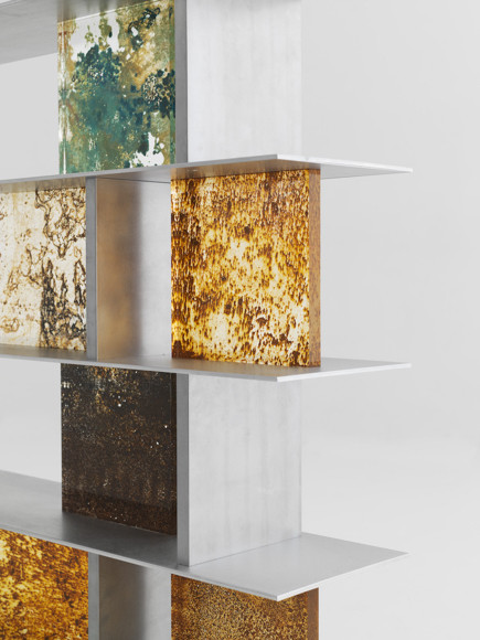狩野佑真さんも素材に始まる取り組みを展開しています。「Rust Harvest」は海に面した造船所にアトリエを設けていた際、周囲の金属に生じる錆が美しいと感じたことからスタートしたプロジェクト。狩野さんはこう話してくれました。「鉄板上で錆を育て、いい錆が生まれる頃合いを見はからってアクリルに転写します。作業を繰り返すうちに農業のようにも感じて『錆の収穫 / Rust Harvest』と名づけました」