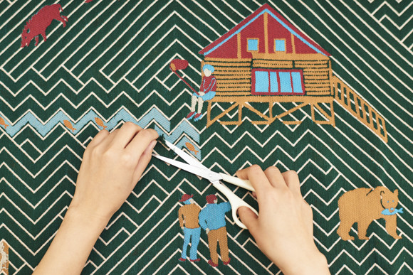 フィンランドで学んでいた際に出会ったジャガード織りを始め、テキスタイルの構造そのものからとり組む氷室友里さん。使う人々が深く関わることのできるテキスタイルをかたちにし、テキスタイルの可能性そのものを広げています。作品のひとつが「SNIP SNAP」。二重に織られていて、使う人がハサミで思い思にカットし楽しむことが可能。切ったところに新しいストーリーが生まれ出る、という楽しさにも満ちた作品です。
