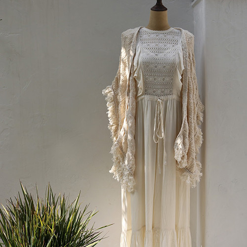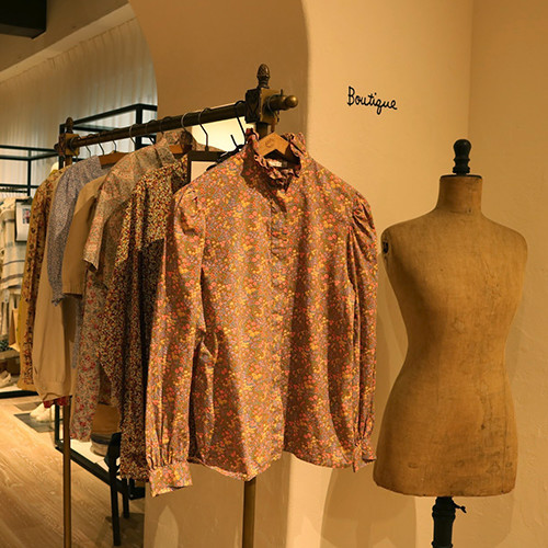 「愛ある暮らしは心地よい」という想いにこだわったこのコンセプトストアには、パリという街への憧れと敬意をよりどころに集めた服やヴィンテージ雑貨、ビオワインなどが並び、桜並木を眺めながらくつろげるカフェも併設。アーチで区切られた4つの部屋には、フランスで買いつけたアンティーク家具や観葉植物を配し、古いものと新しいものが心地よいバランスでミックスされた空間を提案する。ショップは、ブティック、マルシェ、カフェ「アンリブレ」の3つのパートで構成。ブティックで取り扱う服は、ヨーロッパらしい色使いや繊細な手仕事、やさしい着心地や素材というのはもちろん、環境や地球に対しても配慮したものをセレクト。また、それらの服が作られた背景や作り手が想像できるものというのもチカバのセレクト基準のひとつだ。チカバのオープンのためにセレクトされたブランド、スペイン発のメゾンホテルとギリシャ発のパール&キャビアには、それらがすべて詰まっているので、ぜひ注目して。