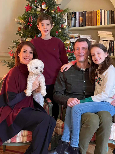 デンマーク王室のヨアキム王子一家の2021年のクリスマス写真。マリー妃が抱いているのがビション・ハバ二ーズ。@detdans-kekongehus