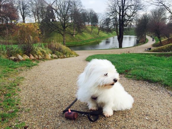 筆者が飼う、ビション・ハバ二ーズ。コペンハーゲンのカステレット要塞跡の公園はワンコ連れで賑わう定番の散歩コース。