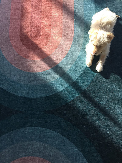 洗うたびに「マジか!」と思うほど画期的だ。洗った後のラグは犬と遊んでいても心地いい。ラガブルではデザイナーとのコラボも展開していて、昨年ジョナサン・アドラーコレクションが発表された際には、犬が走る廊下用のピーコック柄の細長いランナーをゲットした。ラグがお気に入りなのか、もちはたまにラグの端っこに座り込み、そこから一歩も出ないことがある。