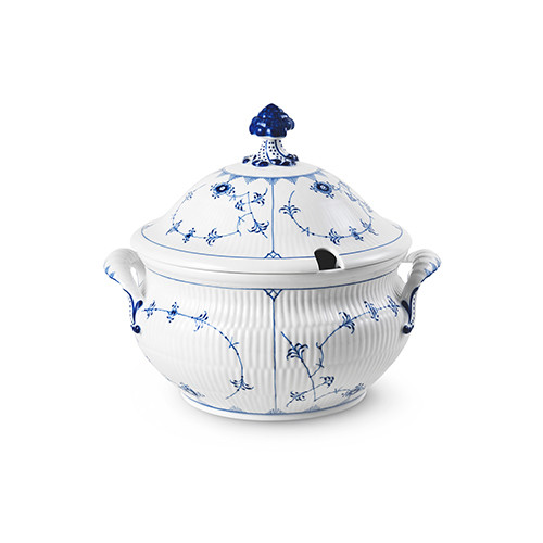 ロイヤル コペンハーゲンのアーカイブに想を得たアイテムで、オリジナルデザインは1900年代初頭の頃にさかのぼる。蓋の取っ手には小さなカタツムリが乗ったディテールも愛らしい。インテリアとして飾るにもふさわしい逸品。 「ブルーフルーテッド プレイン チューリン ラウンド」(∅24×H26cm)¥220,000(5/11発売、ロイヤル コペンハーゲン本店、公式オンラインショップ限定)