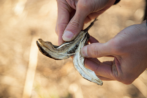 八角オクラから採り出したタネ。こうやってタネを採り、また畑に植える。タネには、この地の風土や気候が刻まれていく。