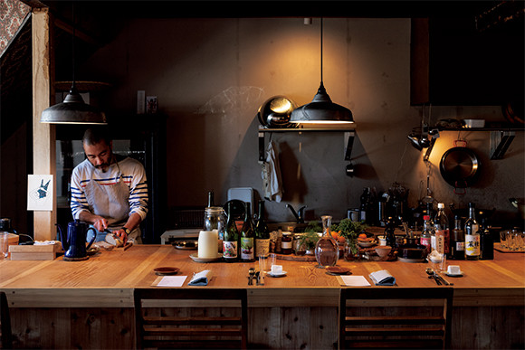 小浜温泉街の一角、こぢんまりとセンスが良い店は美容室だった建物をリノベーションしている。カウンター席のみで、目の前で原川が野菜を調理していく。