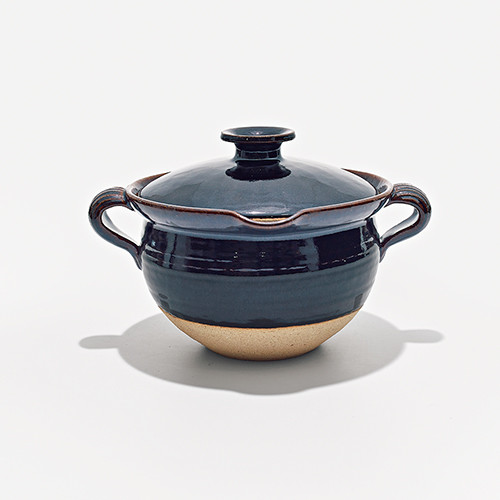 三重県伊賀市の工房、圡楽窯による土鍋。伊賀の土を使い、手挽きろくろで職人がひとつひとつ手作りしている。深底型のポトフ鍋は鍋全体が熱されるので保温力に優れ、炊飯や煮込み料理に適する。鉄釉に覆われているので、油をひけば肉や野菜を焼いたり炒めるのにもおすすめ。3サイズで展開。約3Lの7寸(φ24×H20cm)¥13,200/圡楽
