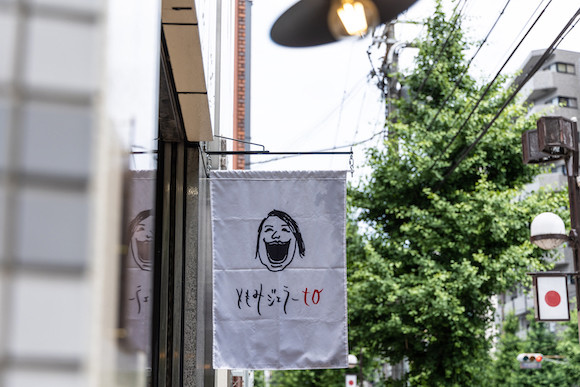 河原町五条の交差点近く。森兼さんの似顔絵の旗を目印に。店名の「to」は「農家さんと私、私とお客さま、お客さまと農家さんなど、人のつながりを大切にしたい」から。