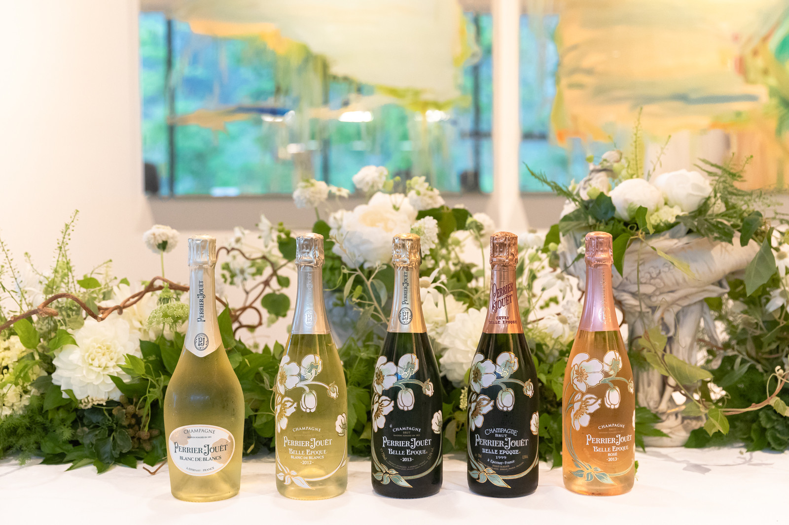 (左から) この日振舞われたシャンパーニュ。「ペリエ ジュエ ブラン・ド・ブラン」750ml ¥14,740。シャルドネ100%の清らかで優雅な味わい。「ペリエ ジュエ ベル エポック ブラン・ド・ブラン 2012」750ml ¥88,000。シャルドネ100%、フローラルな香りとピュアな酸味が魅力。「ペリエ ジュエ ベル エポック 2013」750ml ¥27,830。白い花の香りと豊かなミネラル感。「ペリエ ジュエ ベル エポック1999」(参考商品)。美しい熟成を重ねて、深みのある味わい。「ペリエ ジュエ ベル エポック ロゼ  2013」750ml ¥55,000。赤い果実とスパイスの香りが特徴的。