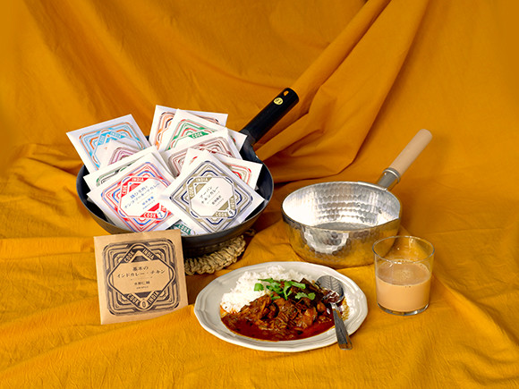スパイスキット「COOK INDIA」13種各¥972〜、スパイスキット「UNKNOWN INDIA」6種各¥540〜、スパイスのふりかけ「CRAFT SPICE」5種各¥864〜、レトルトカレー5種各¥648〜、釜浅商店の打出し北京鍋(1.6mm厚・30cm)¥4,752〜、姫野作・本手打アルミ行平鍋(7寸21cm)¥15,400〜