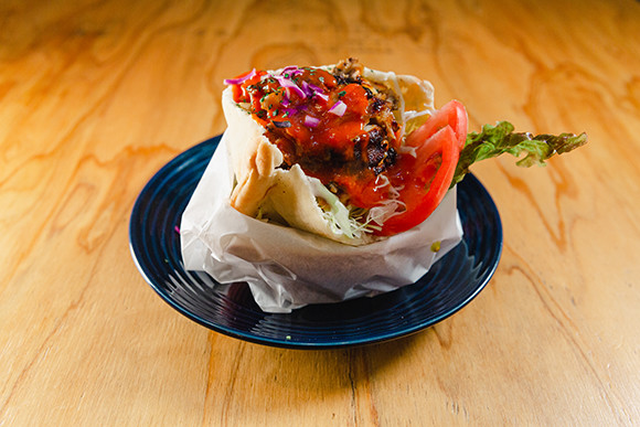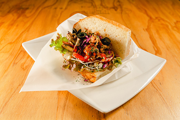 特徴は豊富なメニュー。ケバブは、ピタで挟んだサンドメニューとトルティーヤで巻いたラップメニューの2本柱で、それぞれ具材としてチキンケバブ、ビーフケバブ、シーフード、サイコロ角煮、フィッシュフライ、ファラフェルを用意。チリやテリヤキ、ヨーグルトなど、さまざまな辛さや甘さのオリジナルソースを10種類から選ぶことができる。