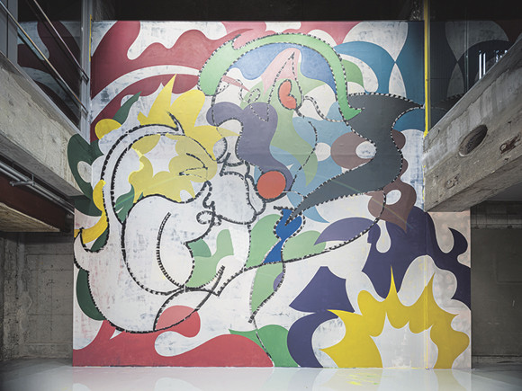 さまざまな素材や柄の壁をコラージュのように繋ぎ合わせ、虫食いの跡を描いたビエンの『PLAY WALL/ROOM』。まるで舞台のセットのよう。