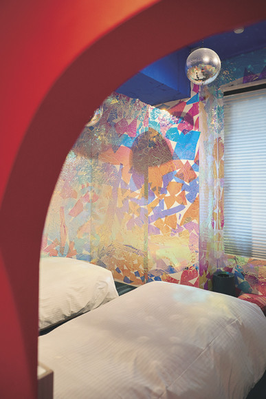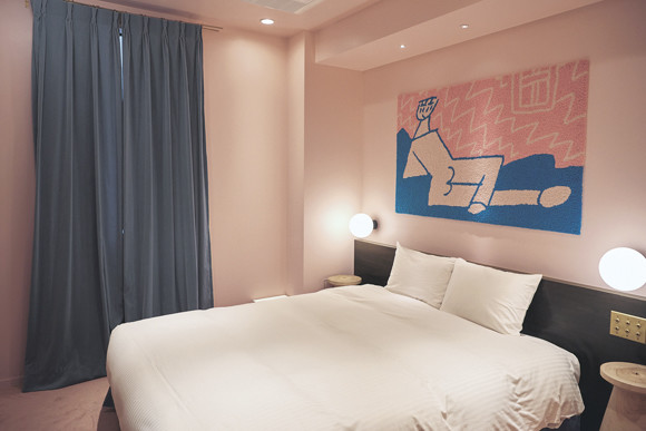 アートホテルの先駆けともいえるビーエヌエーが昨年4月、高円寺、秋葉 原、京都に次ぐ4軒目を日本橋にグランドオープンした。新しいホテルでは アート作品を飾るのみならず、“東京”にルーツを持つアーティストたちが各部屋の設計から関わったというこだわりよう。それぞれの扉には部屋の 名前、作家名が展示キャプションのように綴られており、サイドコア、マグマ、ビエンなど、アップカミングな人気アーティストたちが名を連ねる。そ れぞれのクリエイティビティあふれる空間は、まるで小さな宇宙。宿泊料金の一部をアーティストに還元するパトロンシステムを採用しているため、滞在することでお気に入りの作家を支援することもできる。