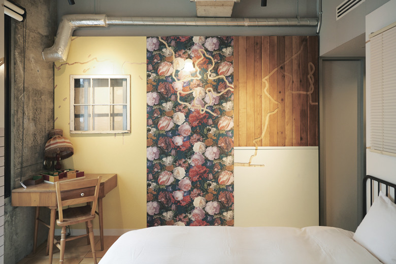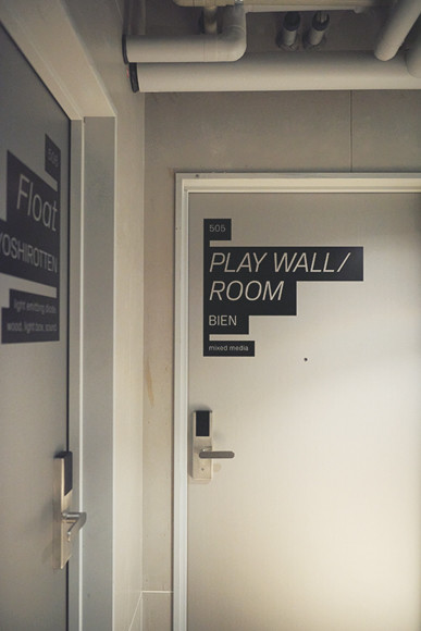 呉服を扱う商社のオフィスビルを再生。ホテル名の由来にもなっている館内の大きな壁では、アーティストが不定期で制作活動をする。