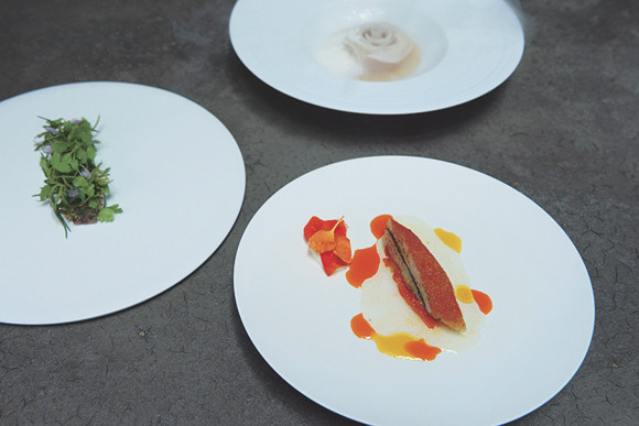 フロリレージュ監修のメインダイニング。おっきりこみや鮎などを用いた“上州キュイジーヌ”を、地元出身のシェフ片山ひろが提供する。