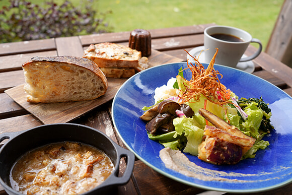 横須賀の農園や鎌倉の市場で仕入れるフレッシュな野菜をふんだんに使ったサラダは食べ応え抜群。何種類かパンを選んで、家族や友人とシェアするのもおすすめ。