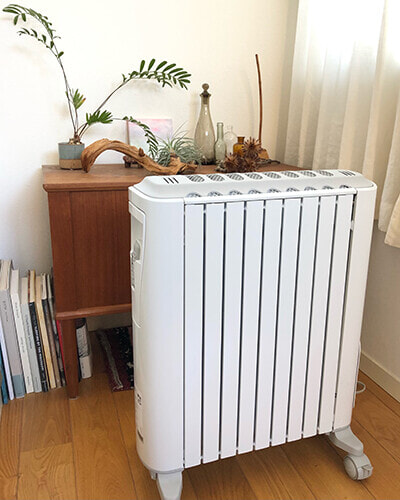 編集MIのリコメンド。じわじわと心地よく部屋を暖め、肌や喉が乾燥しにくいオイルヒーター。タイマー設定もできるので、起床前や帰宅前に合わせて部屋を暖めておけるのが◎。インテリアに自然になじむデザインもうれしい。