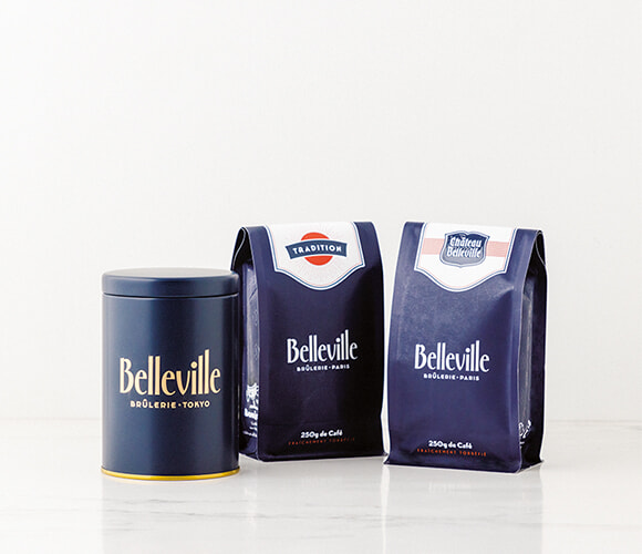 2022年に初上陸したパリ発のスペシャルティコーヒー専門店。本店で人気の「シャトーベルヴィル」は中煎りブレンド。日本デビュー記念の深煎りブレンド「ラ トラディション」も。●各250g ¥1,950~、キャニスター¥950