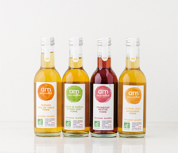 フランスの高級百貨店やレストランで扱われるノルマンディ発オーガニックジュース。ミントやハーブで香り付けした新感覚の味。ウィリアムズペア、リンゴ、アプリコットなど。●各750ml ¥1,706