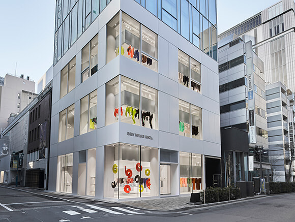 「ISSEY MIYAKE GINZA / 442」。大きなガラス面から店内の空気が伝わってくる。
