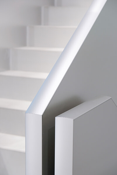 場所や建物自体の構造によって店内に差し込む光も異なるのでアルミの表情は各店舗で微妙に違ってきますが、ここISSEY MIYAKE GINZA/ 442でも、三宅一生のコンセプトである「一枚の布」のようにリサイクルされた一枚仕立てのアルミで空間が構成されています。要素をアルミに絞り、その素材感を活かしながら吉岡さんらしく細部まで丁寧に考えられた仕上げとなっています。
