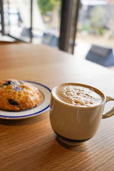 Bullet Coffee〈Coconut〉¥650、ブルーベリークリームチーズスコーン¥400