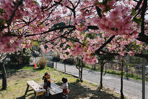 広場には、早咲きの河津桜が植えられている。花の色味も濃いピンクなので、子どもたちもいつも可愛いと大喜び。上の娘が小さいときは、家から広場までふたつの踏切を越えるので、電車好きの彼女のお気に入り散歩コースにもなった。桜が散ったあともたびたび散歩に行ったので、その木に可愛らしい小さなサクランボがなることも、その実が意外にも甘いことを知ることができた。