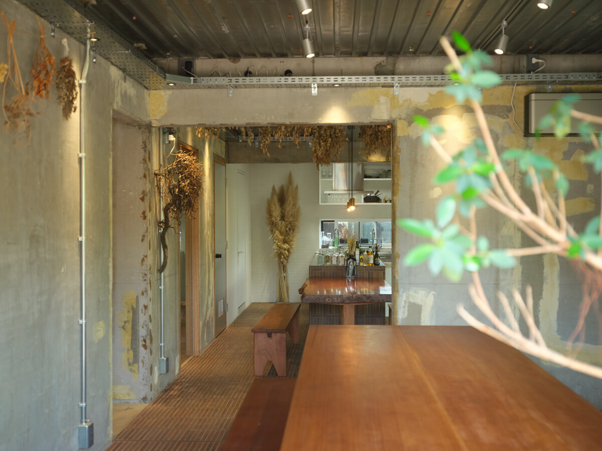 畑から徒歩5分の場所にある1軒屋のレストラン。のんびりした雰囲気とスタイリッシュな内装が心地よい。