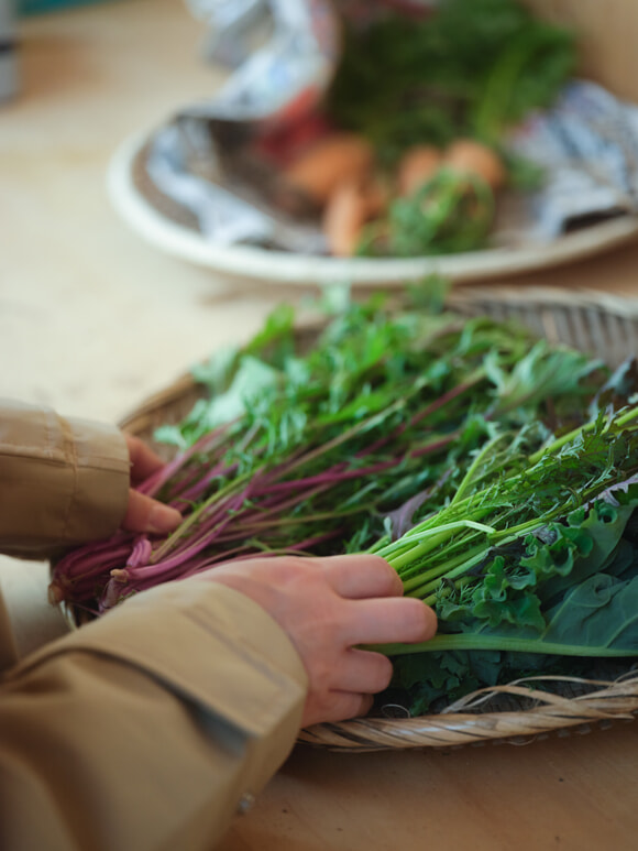 冨永さんが学び、実践しているのは農薬や化学肥料を使わない有機農法だ。子どもの頃からこの場所で土に触れてきた川口さんは、土壌が劇的に変化するのを目の当たりにした。「以前は耕してもすぐに土が硬くなってしまって、根菜がまっすぐ育たなかったんですが、有機に変えてからは大根が太くしっかり育つようになりました。休耕地もほとんどないですね」