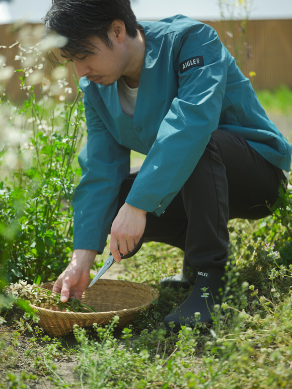 1853年フランスで生まれたエーグルは、創業当時から天然ゴム製のラバーブーツをハンドメイドで作り続け、自然に寄りそいながら独自のクラフトマンシップを育み、農家たちに愛されてきた。土で繋がるさまざまな自然のフィールドでの活動をサポートしてきたエーグルは、街と自然を繋ぎ寄りそう暮らしを提案し、近年はより一層環境へ配慮した製品作りを実践している。