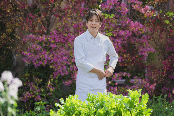 小林寛司(こばやし・かんじ)「ヴィラ アイーダ」オーナーシェフ。1973年和歌山県生まれ。辻調理師専門学校卒業後、大阪のイタリアンレストラン「アルバ」に2年勤め、94年、21歳で渡伊し、イタリア各地のレストランで修業。96年からカンパーニャ州ソレントの3ツ星(当時)「ドン・アルフォンソ 1890」でパスタ部門のシェフを務め、98年帰国。同年12月、実家が持つ田んぼの真ん中に「リストランテ アイーダ」をオープン。2007年に現在のスタイルに改装し、「ヴィラ アイーダ」として再出発。レストランに隣接する自家菜園で、年間約100種類以上の野菜やハーブをマダムの有巳さんとともに栽培。その日に収穫した野菜やハーブを中心に、近隣の魚介、家禽、ジビエを合わせた料理を提供する「ガーデン・ガストロノミー」として、一日一組のみでゲストをもてなしている。著書に『自然から発想する料理』(柴田書店刊)がある。