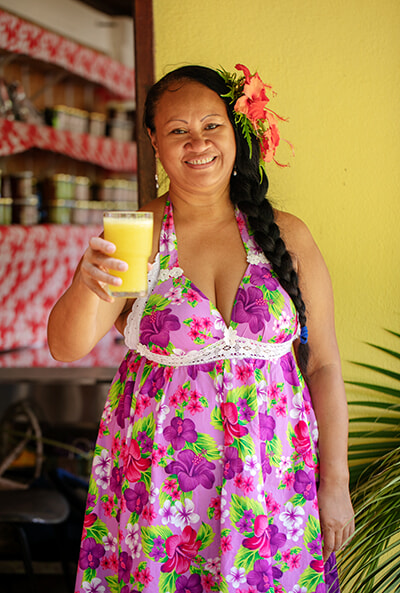 きれいな水と土地が育む甘い果物をおやつに島を巡ると、小さな店の軒先にカラフルなパレオが風に揺れている。木陰で寛ぐ家族や、おしゃべりに夢中な少女……そんな地元の人たちと一緒に、タヒチの名物料理、ポワソン・クリュを海辺でいただいて。モーレア島のゆるりとした雰囲気は、アーティストに愛され、他島に住む人も憧れるという。日帰りでも長期滞在でも、必ず訪れたい島だ。