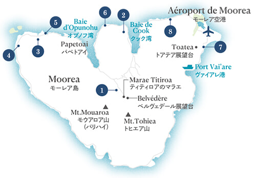 タヒチ島から飛行機で約15分。ボラボラ島から約45分。タヒチ島のパペーテ港からフェリーで30分。