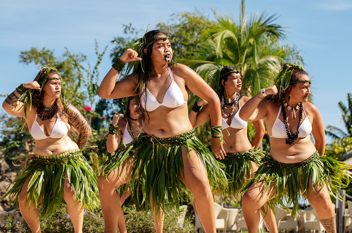 フラダンスよりダイナミックな要素のあるタヒチアンダンスは、各島各ホテルでショーがあるので滞在中どこかで必ず観たい。(Map5)インターコンチネンタル・タヒチ・リゾート&スパのレストラン・テ・ティアレでは、毎週日曜のブランチにマルケサスダンスのチームが披露している。