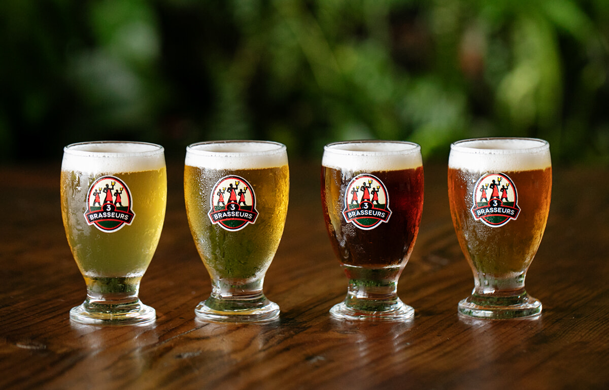 テイスティング120ml×4グラス(左から、Blanche、Blonde、Ambrée、IPA)1,450CFP