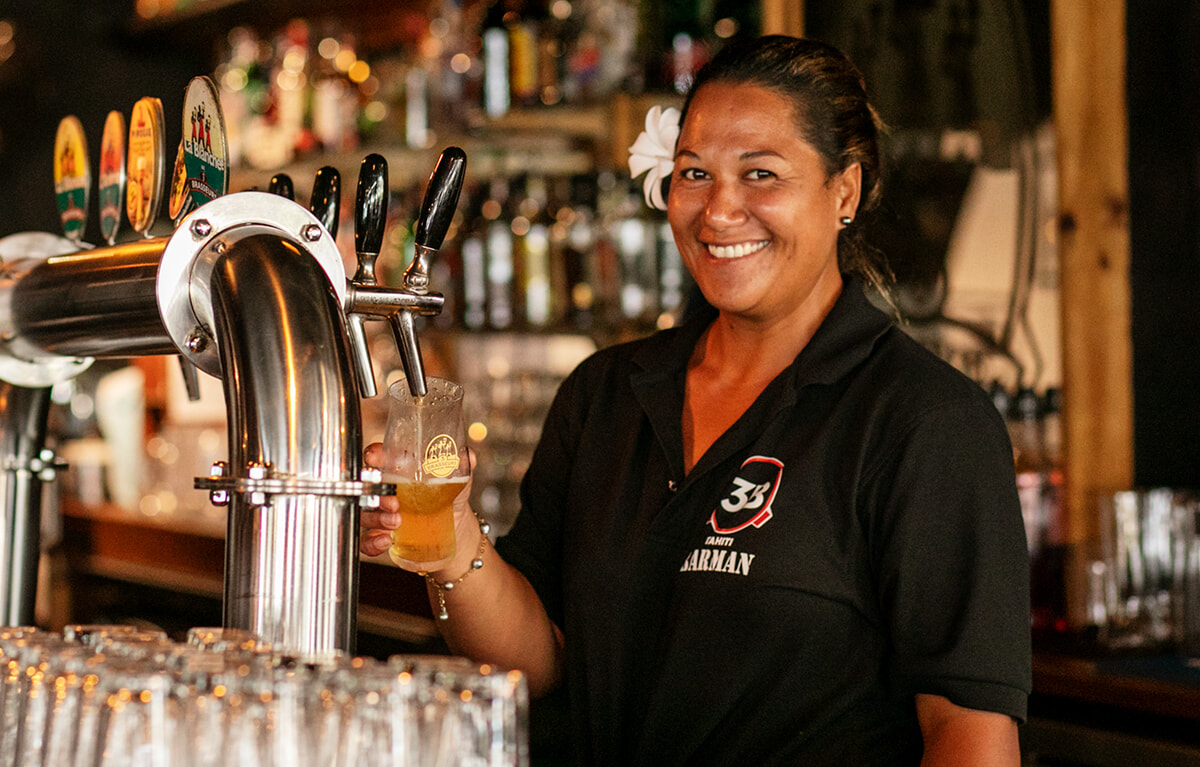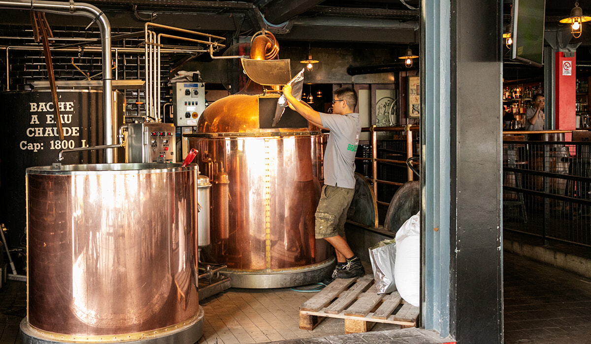 フランス・リールの駅前で始まった地ビールが、タヒチ島にも進出。店の一角で平日は毎日麦芽とホップを仕込み、自家製の酵母を使い発酵、出来上がるまで約2週間。島の水質が良いため、材料は同じでも格段においしいそう。2021年、2階に雰囲気の異なるバーもオープン。