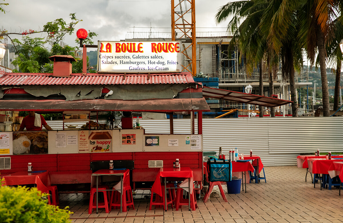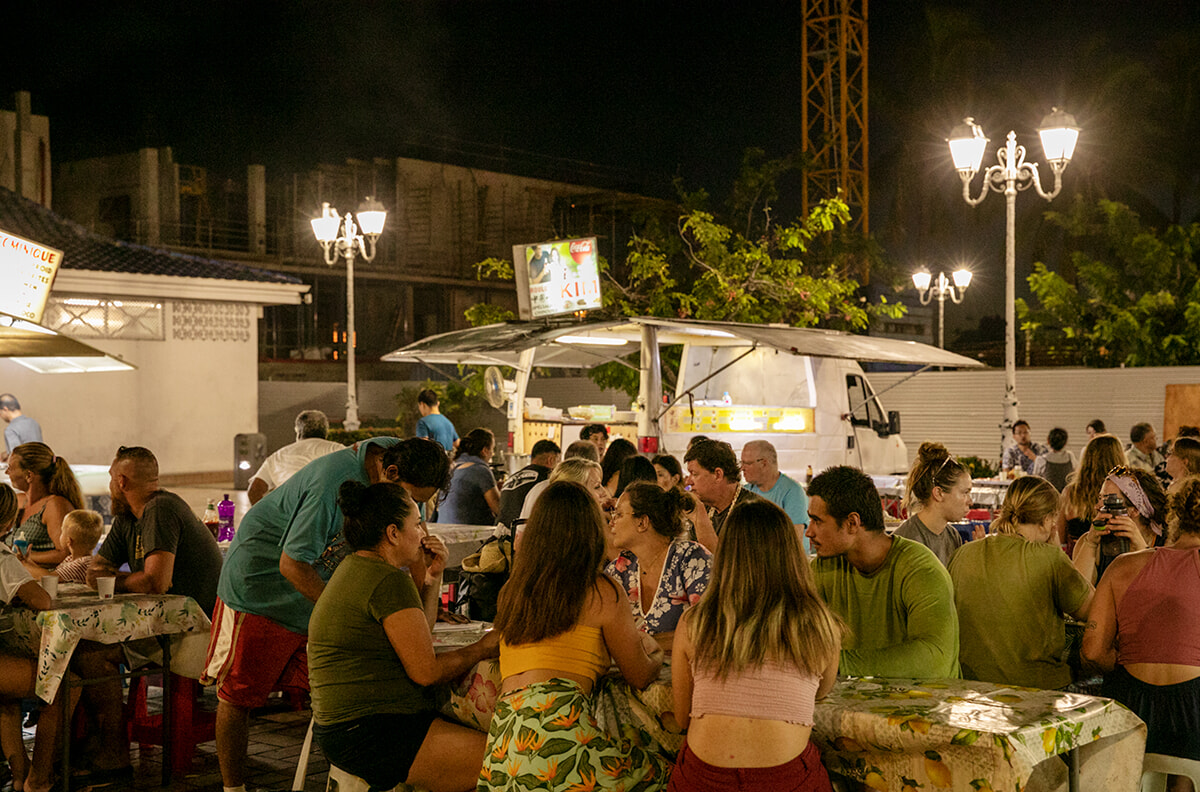 移動式屋台はタヒチ名物のひとつ。レストランより安く食事ができるとあって、地元の人もよく利用するという。ほかの島にもあるが、特に有名なのがタヒチ島ヴァイエテ広場のルロット。中華料理を中心に、魚料理、クレープなど6台ほどが並ぶ。アルコール禁止なので注意。